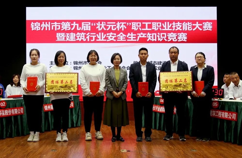 2022年9月23日下午,錦州華地建設(shè)集團(tuán)參加由錦州市總工會(huì)、錦州市城市建設(shè)服務(wù)中心主辦;錦州市行業(yè)工會(huì)聯(lián)合會(huì)、錦州市建筑業(yè)協(xié)會(huì)聯(lián)合承辦的錦州市第九屆‘狀元杯’職工職業(yè)技能競(jìng)賽暨建筑行業(yè)安全生產(chǎn)知識(shí)競(jìng)賽”,在30家參賽隊(duì)伍中參加筆試并且突出重圍進(jìn)入決賽,最終榮獲本次決賽第二名,由錦州市總工會(huì)生產(chǎn)保護(hù)部部長(zhǎng)鮑春香為他們頒獎(jiǎng)。